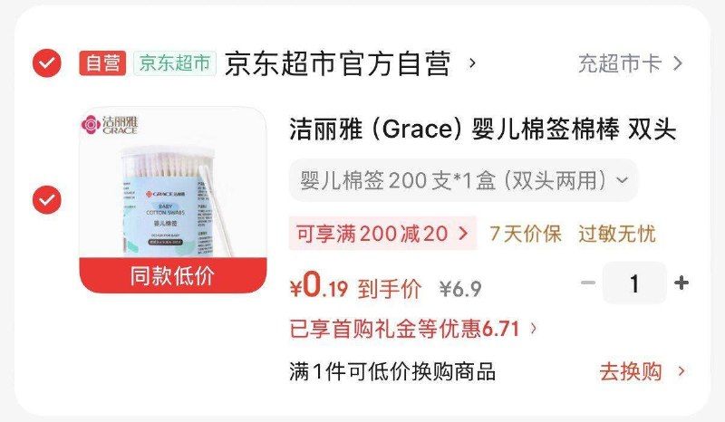 🚦 0.2💰一桶洁丽雅儿童棉签