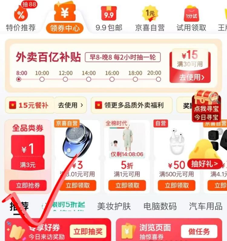 1.京东外賣劵先全領